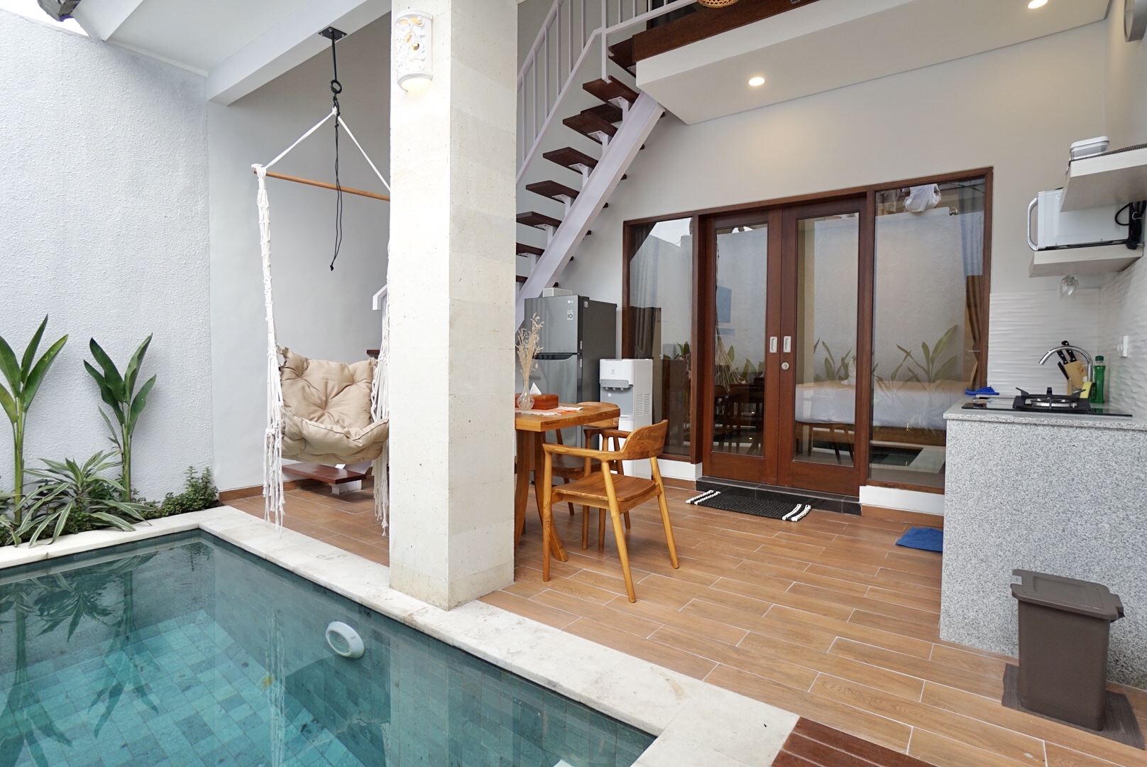 Private Pool, Private Kitchen, Private entrance, Garden, Free WiFi, 24 Hours Front Desk, Air Conditioning, Amenities, Bathroom Amenities, Beanbag, Bed Sheets, Cleaning Product, Clothes Rack, Coffee and Tea Maker, Complimentary Bottled Water, Cooking Utensils, Cutleries, Daily Cleaning Service, Dining Area, Dining Table, Drying Area, Electric Kettle, First Aid Kit, Full Set Kitchen, Garden View, Hairdryer, Hot and Cold Shower, Iron ( on request ), Kitchen Area, Kitchen Utensils, Kitchenette, Laundry Bag, LCD TV, Linen and Blanket, Living Area, Microwave, Mineral Water, Mini Fridge, Netflix Access, Parking, Pool, Pool Deck, Pool Towel, Pool View, Private Bathroom, Private Terrace, Refrigator, Room Service, Safe Deposit Box, Seating Area, Semi Outdoor Shower, Shower, Sink, Sofa, Soundproofing, Stove, Terrace, Toaster, Toilet, Toilet paper, Toiletries, Towel, Trash Cans, Umbrella, Water Dispenser, Water Heater